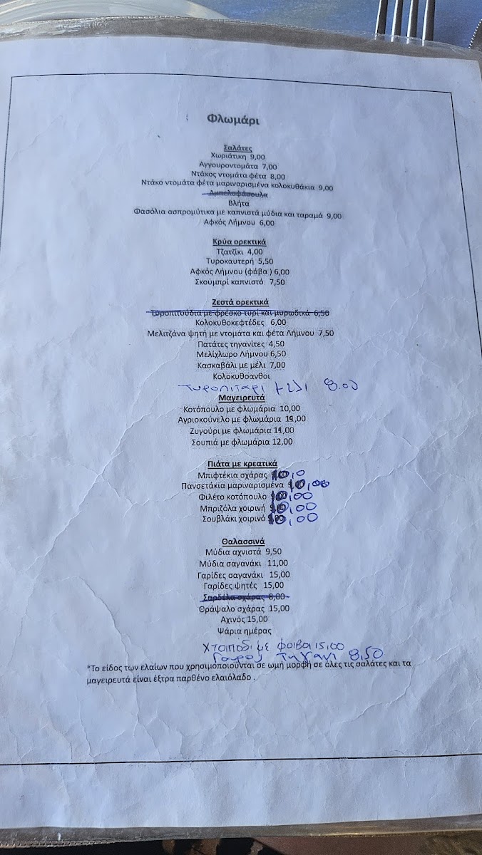 While the handwritten menu adds a personal touch, reviews indicate that the service can be leisurely during busy hours. However, the friendly staff and charming ambiance more than compensate for any delays. With the sound of waves lapping against the shore and the presence of sweet local cats, Taverna Flomari promises a delightful escape into the heart of traditional Greek dining.